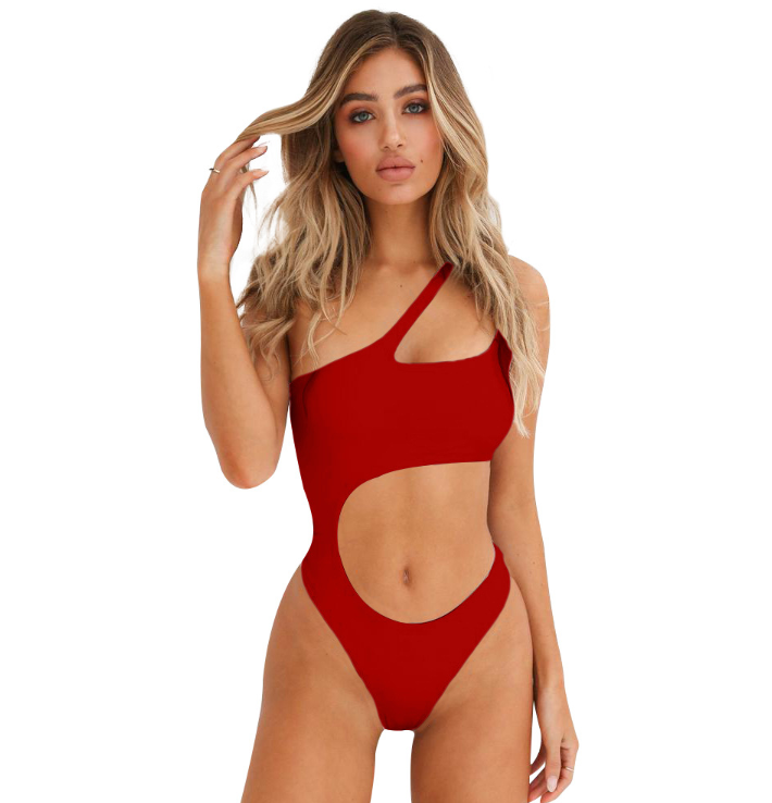Be the first to review “New hollow irregular waist single shoulder solid color wrapped chest bikini one-piece swimsuit female”